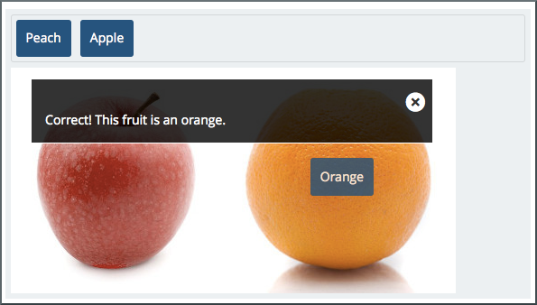 The following image shows the success feedback message that learners see when they match a draggable item with its target zone. Each draggable item has its own success feedback message.