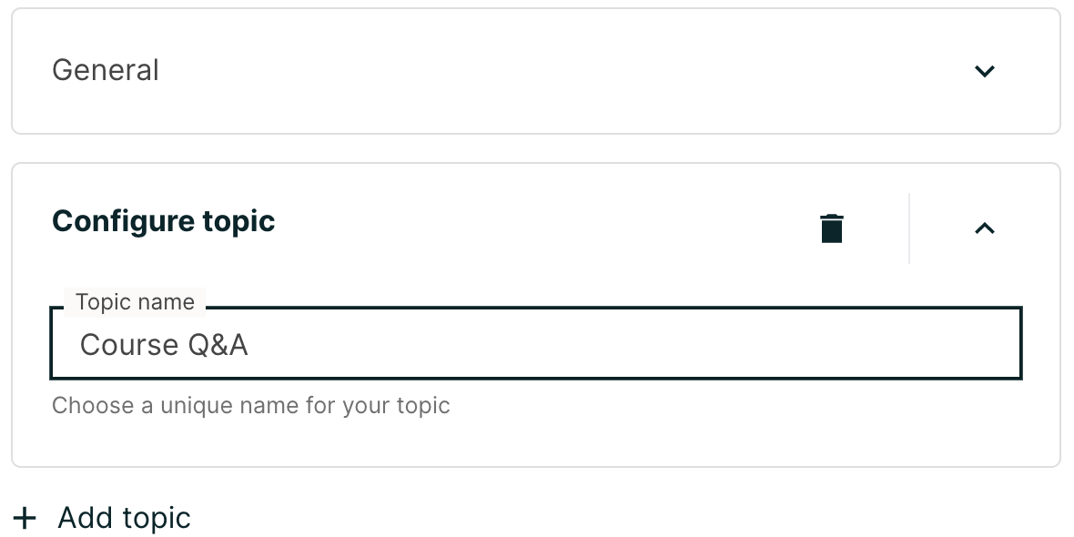 Click on Add topic and add a topic name (e.g. “Course Q&A”)