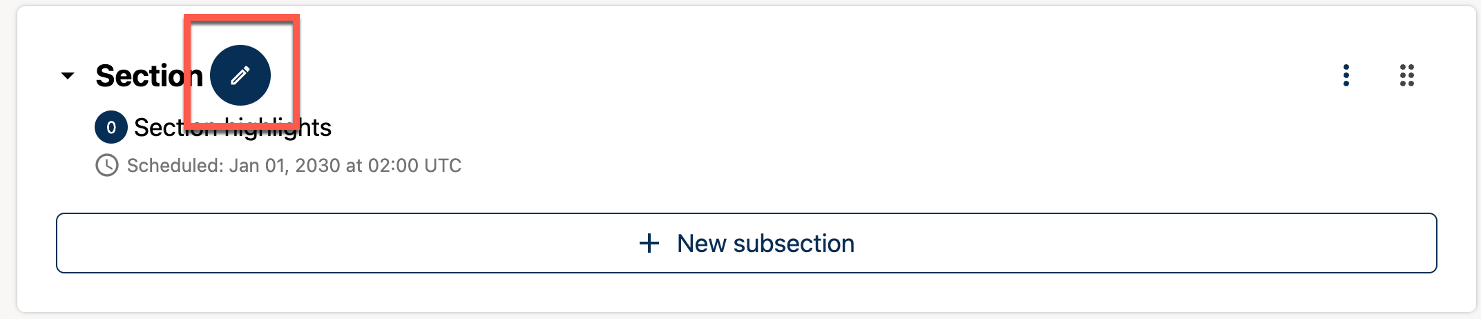 To edit a section name, move your cursor over the section name to show the Edit icon.