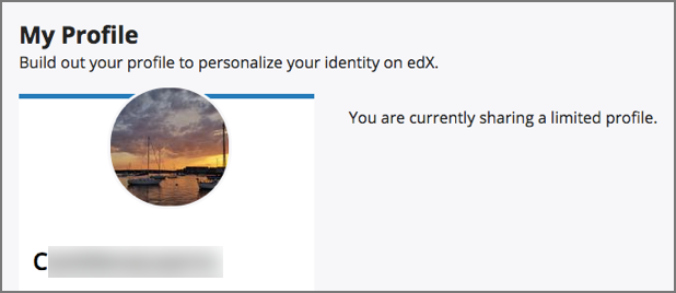 Your personal profile allows you to optionally share information about yourself with other participants in the courses that you take. If you choose to add profile information, course teams and other learners in your courses can view the information that you share.