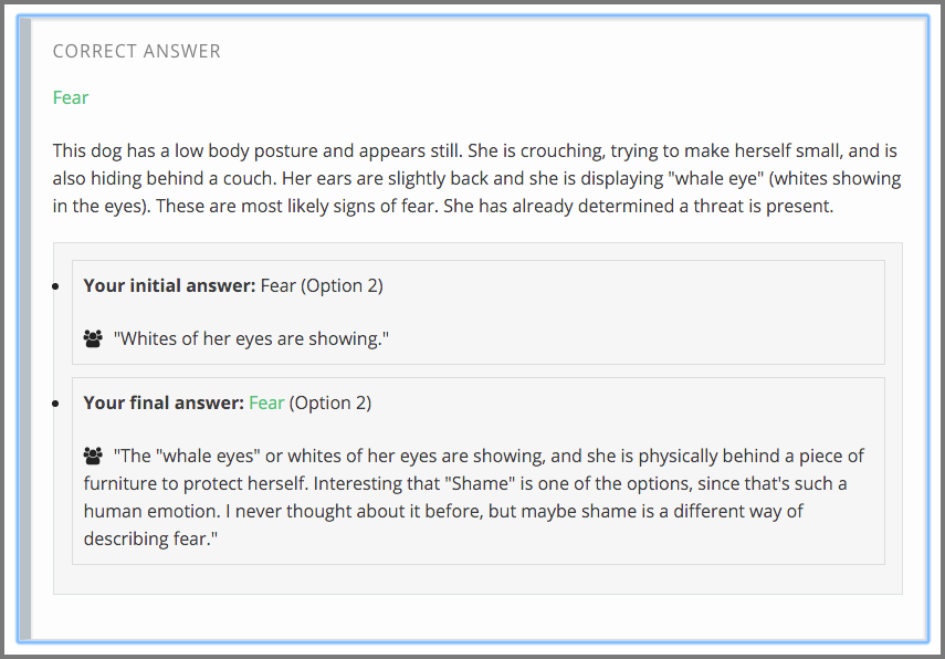 Together, the answer that you chose and this explanation are your initial response. When you select Next, your initial response is added to the collection of initial responses by all of the other course participants.