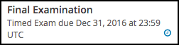 Timed exams are indicated on the Course page by a clock icon and the label Timed Exam.